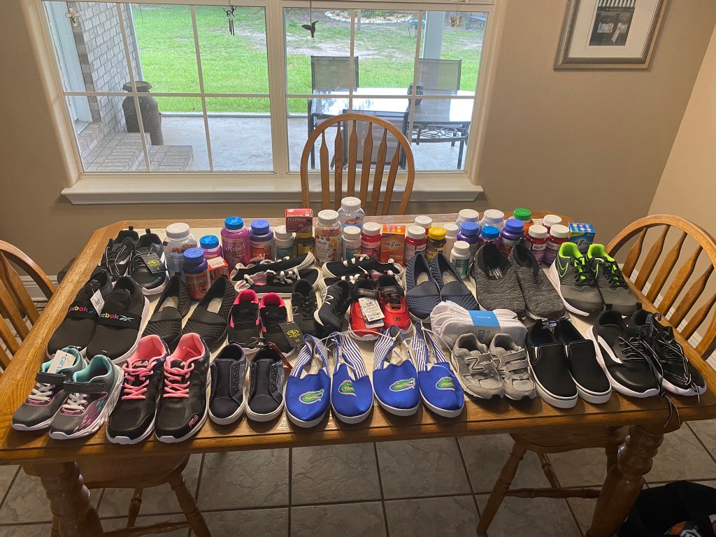 Here is a picture of what I collected before the party. Thank you again to all of you who contributed in this way (and also gave monetarily to cover the cost of the extra luggage or to go toward the building of homes). Like I explained in God’s Math Part 1 (https://loveisthecommonthread.com/2022/07/19/gods-math-part-1/), you provided your part to this equation; YOU provided the loaves and fish…wait till you see what God did to your contributions!