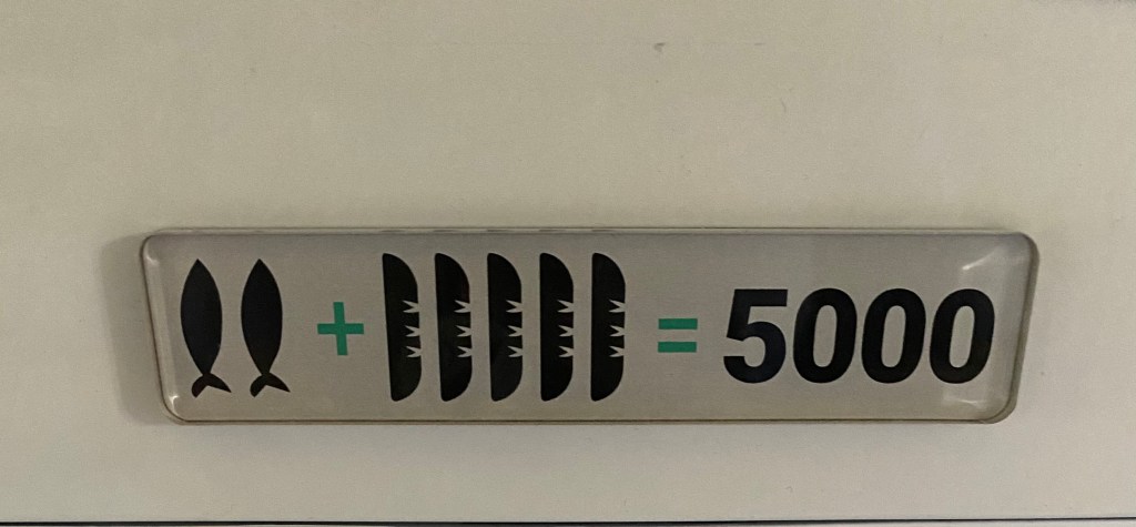 It is the only miracle that was written about in all 4 gospels—the Feeding of the Five Thousand. In the simplest form possible, it went down like this: Word had gotten out that Jesus was in town. People came to hear him speak. After awhile the people were getting hangry, but they didn’t want to miss anything that Jesus said so they weren’t leaving. The disciples were thinking Jesus needed to wrap it up so people could go get themselves something to eat. Jesus told the disciples to have the people sit and said the disciples should feed them. Huh? With what? One of the disciples said, “Hey Jesus, this kid has 5 loaves of bread and 2 fish.” Jesus does His thing—blessings and miracles happen–next thing you know, the disciples are serving the masses bread and fish and even had 12 baskets left over once everyone had their fill.